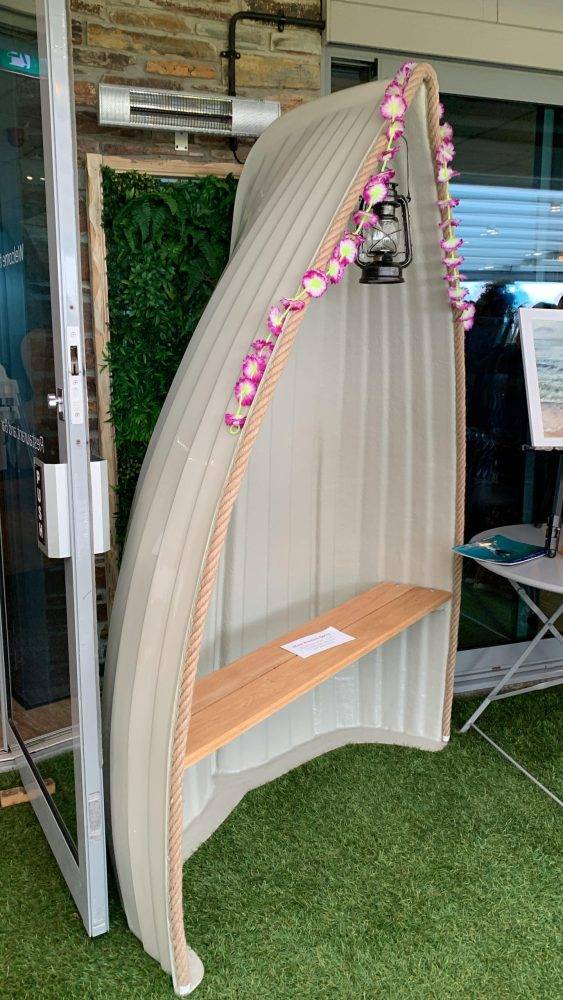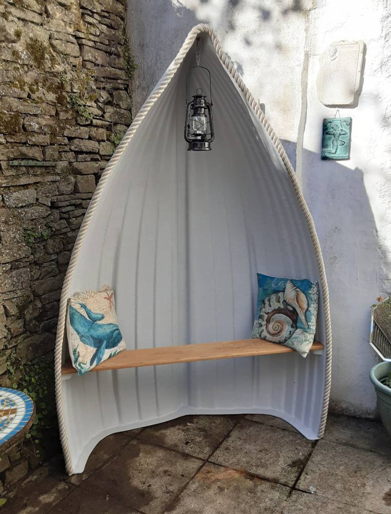 Relax in this delightful classic rowing boat garden seat sturdy fibreglass construction, oak seat and finished with a heavy duty natural hemp rope around the edge, available in 5 lovely standard colours and a choice of any colour in the rainbow for a £35 extra.